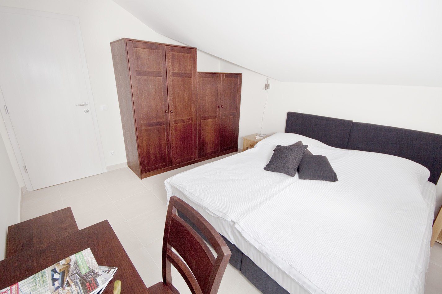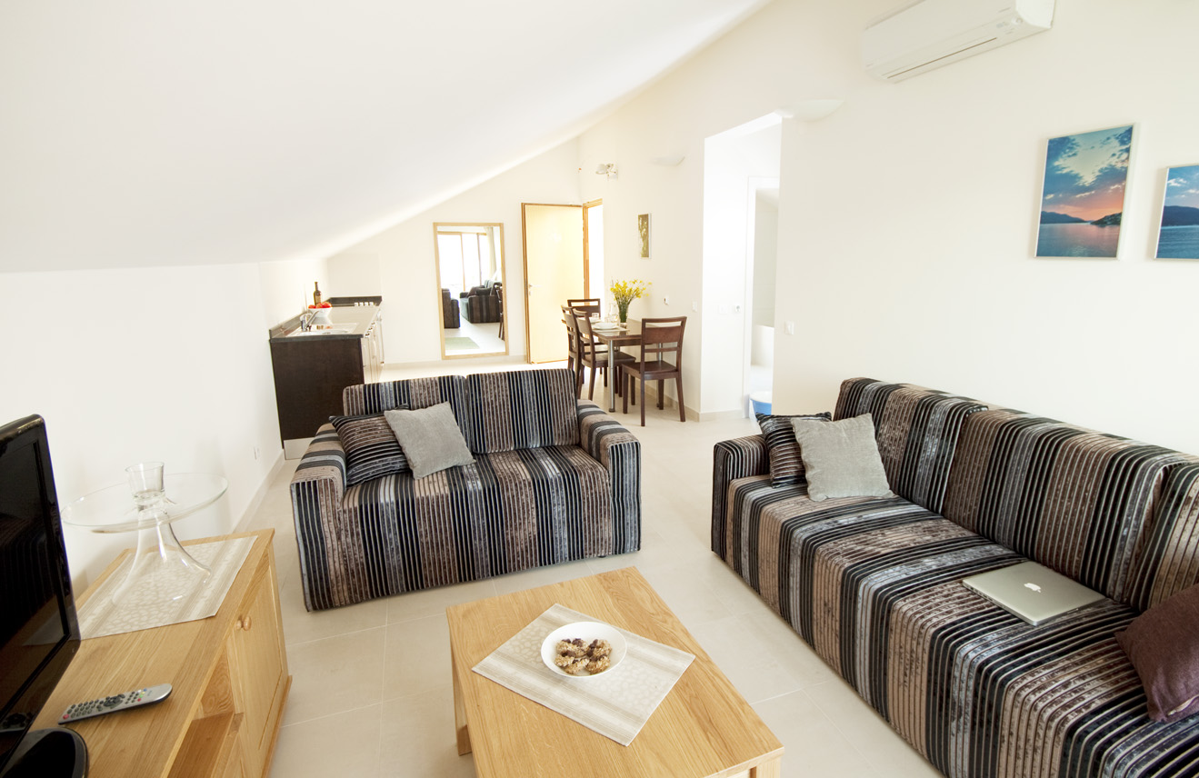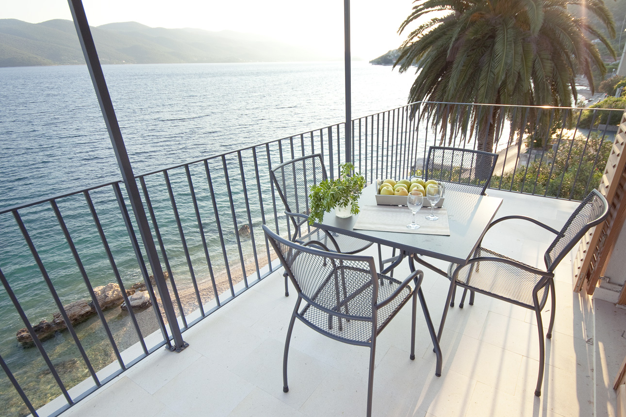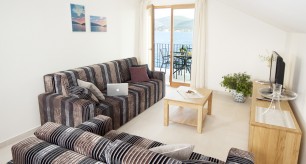 The living room and bedroom have access to the shaded terrace, with a view of the sea and the island of Korčula. The living room is equipped with an LCD TV with satellite channels and a comfortable sofa bed. The sofa bed provides an extra bed so the apartment can accommodate up to 3 persons. The kitchen is fully equipped with a microwave, ceramic hob, dishwasher, refrigerator and granite worktop. All the furniture is custom-made from Slavonian oak. All the furniture is custom-made from Slavonian oak. The double bed has top quality mattresses with aloe vera and high headboards. The terrace furniture is made of wrought steel. The apartment has air conditioning, and under-floor heating.